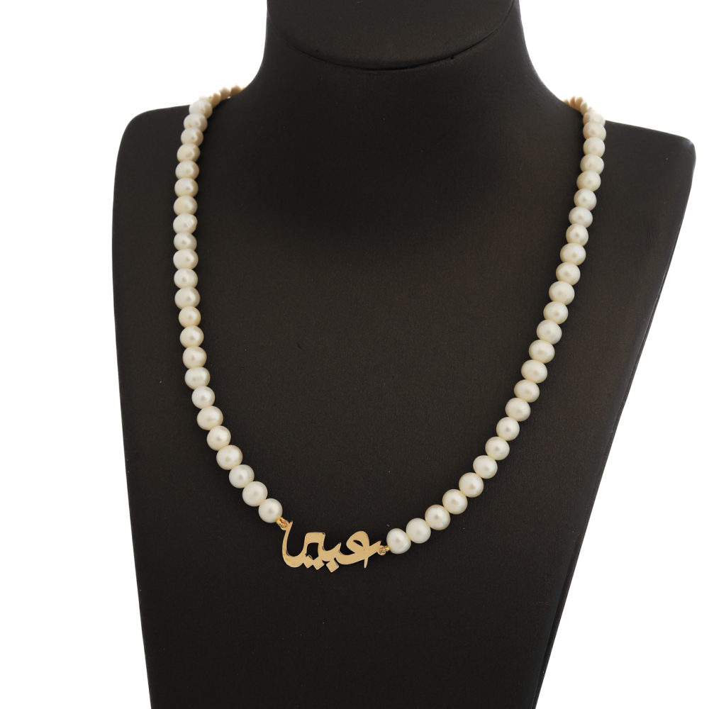 عقد اللؤلؤ – صمّم اسمك من الذهب ✨